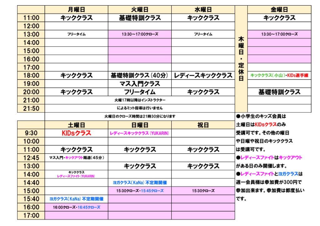 レッスンを行うインストラクターは現役プロのキックボクサーや、キックボクシングとフィットネスが融合しているキックアウトの専属コーチやヨガのインストラクターなど合計4名!!