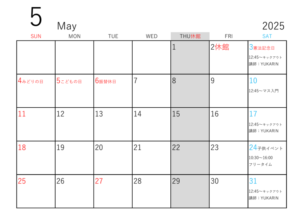 それではブログを見ている方々に私から豆知識をお伝えしたとこで、来月5月の予定をお伝えします。