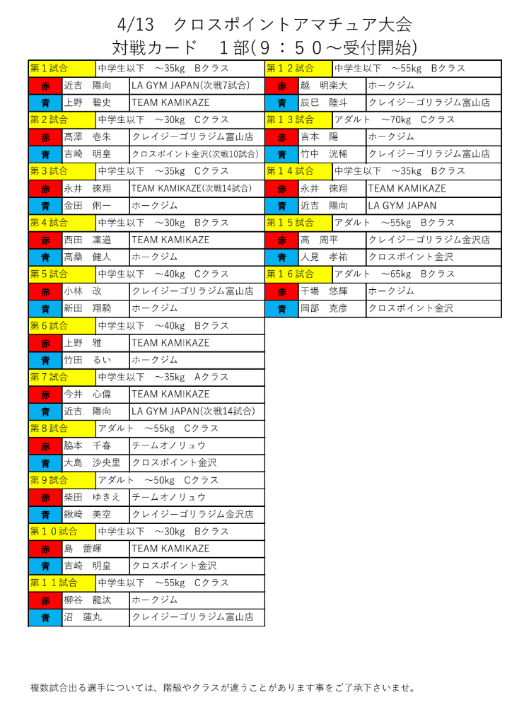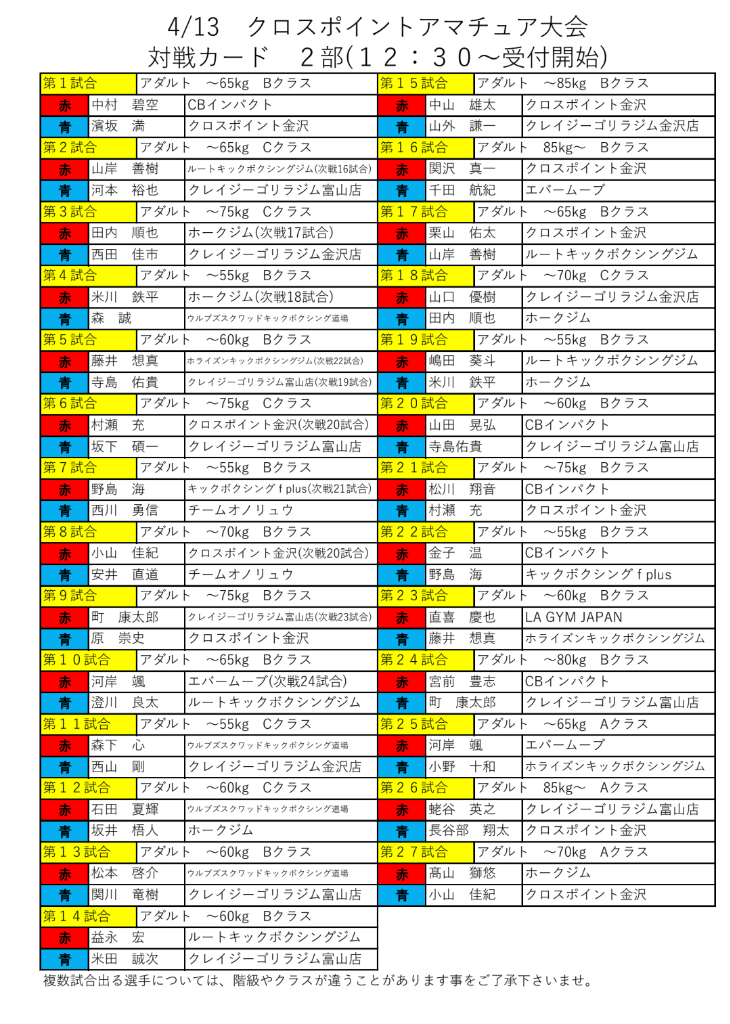 ご参加いただく選手や所属ジムの関係者様、誠にありがとうございますm(_ _)m