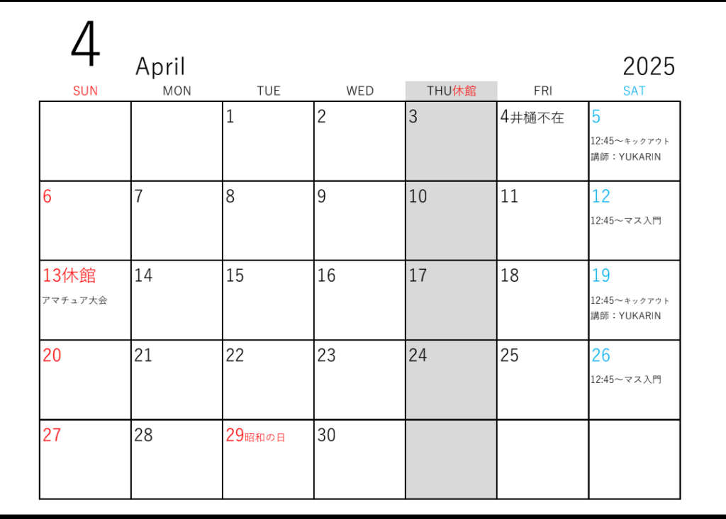 4月はなんと言っても当キックボクシングジムで開催されるアマチュア大会!!