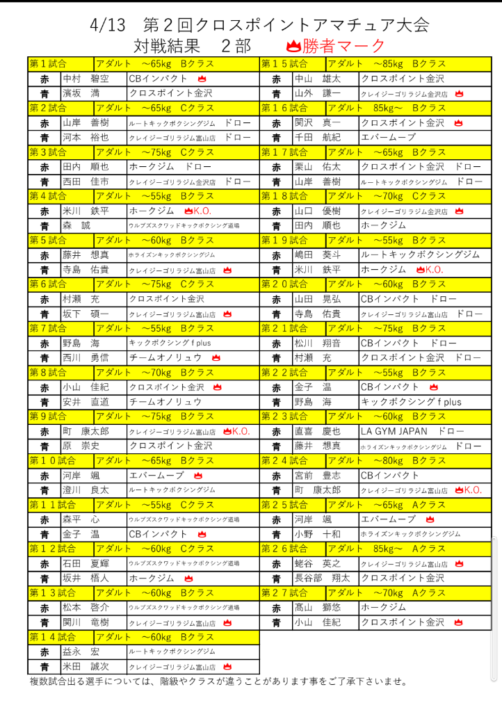 今後も北陸地方のキック熱を盛り上げるために、秋にも『第3回大会』を予定してますのでよろしくお願いいたします。