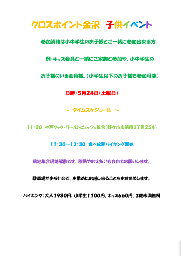 4月突入!!5月に子供イベント予定