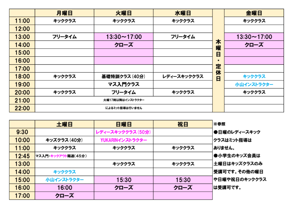 ②小山インストラクターのクラスが金曜18時の他に土曜14時にも開催します!!