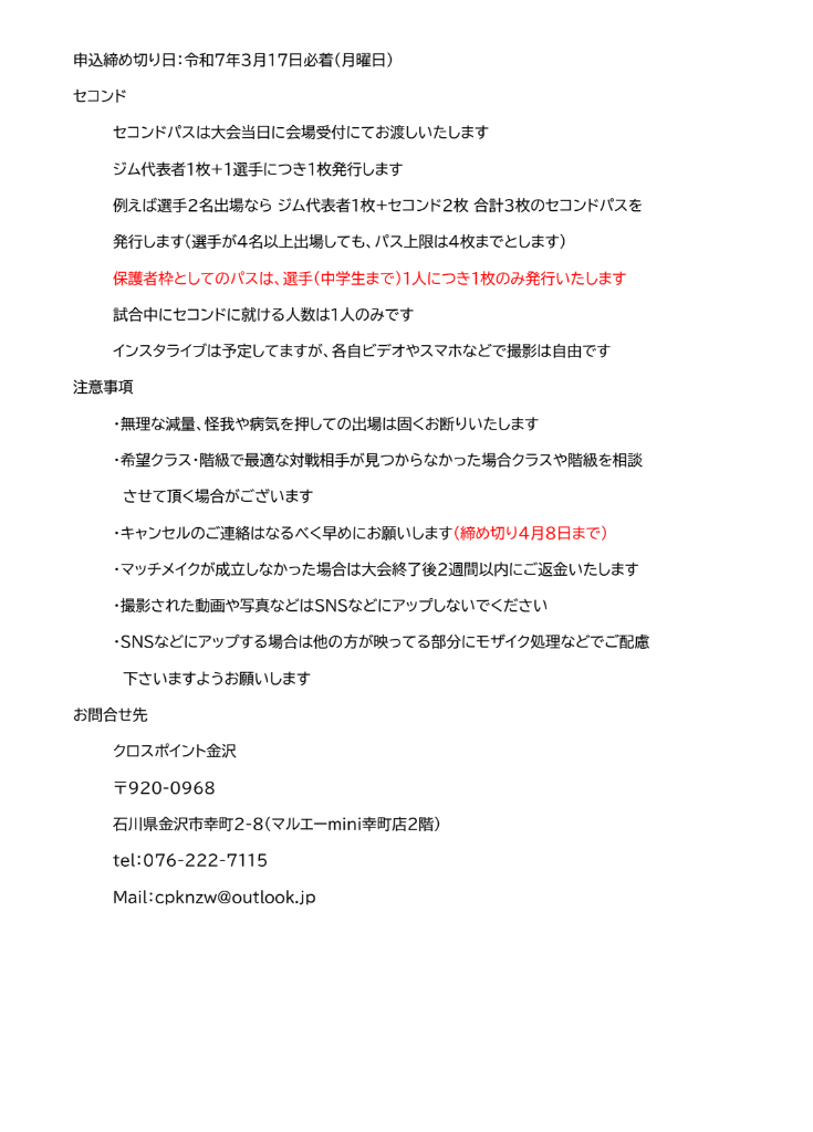 それでは今年最初の、当キックボクシングジムで主催させていただくアマチュア大会の告知になります!