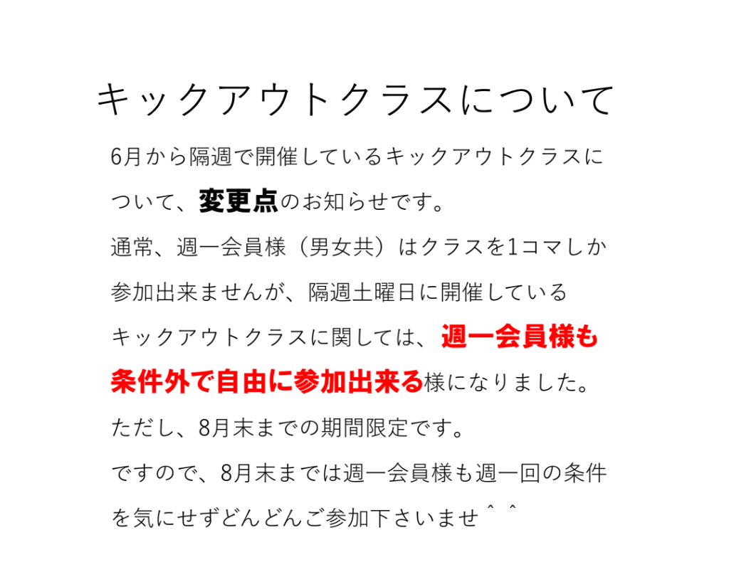 ③隔週土曜日に開催しているキックアウトクラスの週一会員様に向けた参加条件