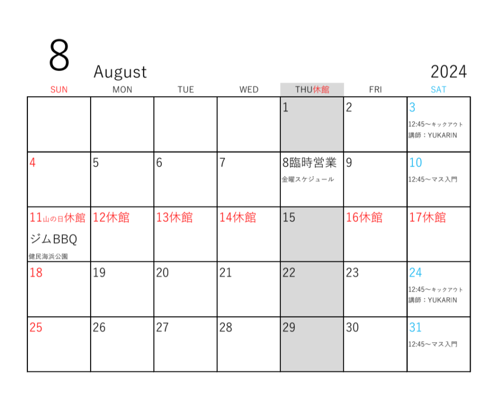 7月は何もありませんが8月はお盆を絡めた時期に1週間のお休みをいただきます。