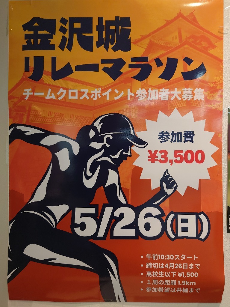 次に5月26日日曜日に行われる毎年恒例の金沢城リレーマラソン。
