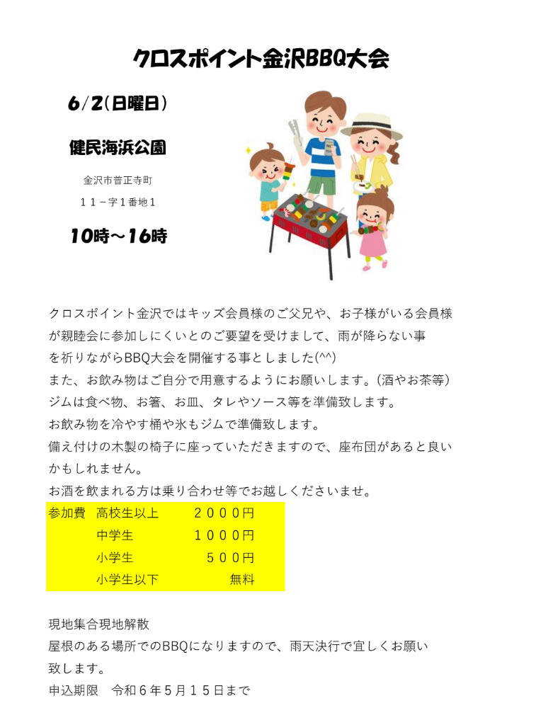 このBBQは当ジムの会員様に向けてや、会員様のお知り合いやお子様、キッズ会員やご家族、当キックボクシングジムの関係者皆さまが参加出来るイベントです。