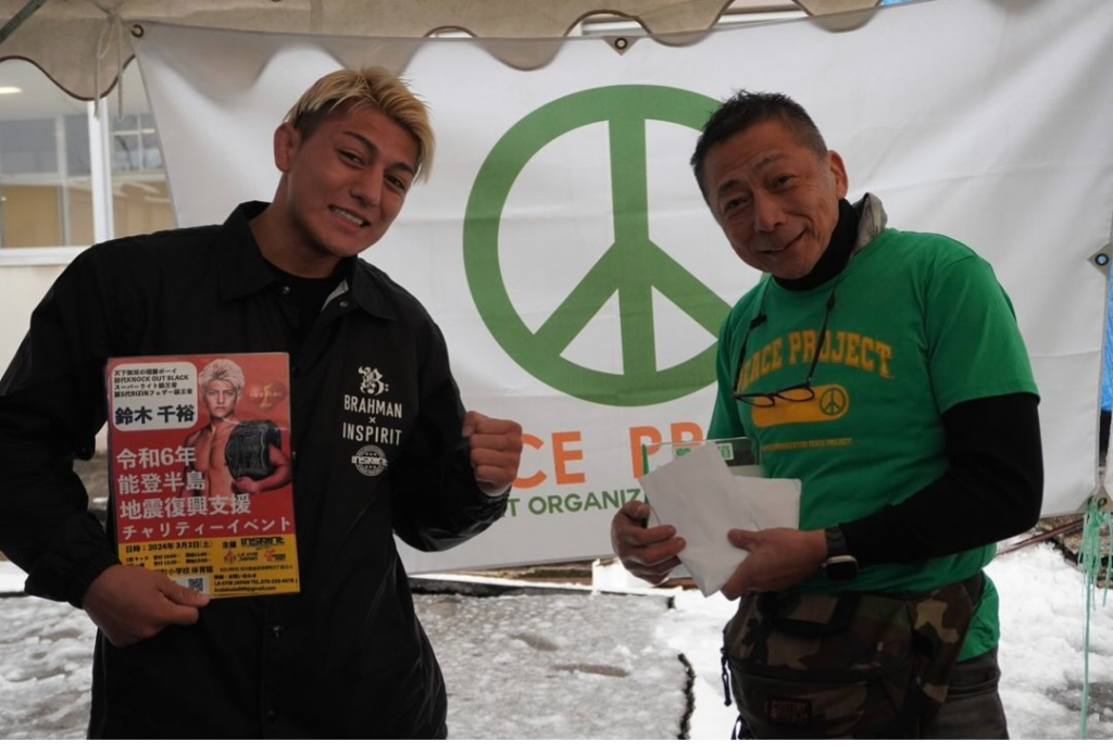 昨日、雪降る寒い中、鈴木千裕チャンプが珠洲市に直接義援金を届けに行ってきました。