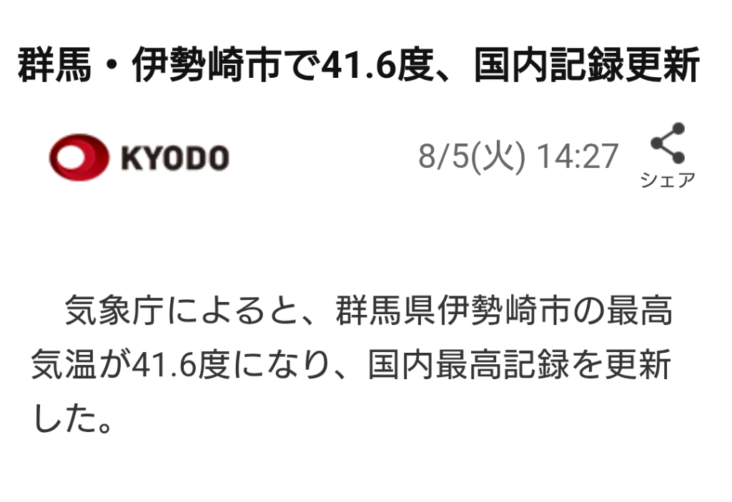今日は群馬県で最高気温が41.6度まで上昇し、国内最高記録を更新しましたね(><)