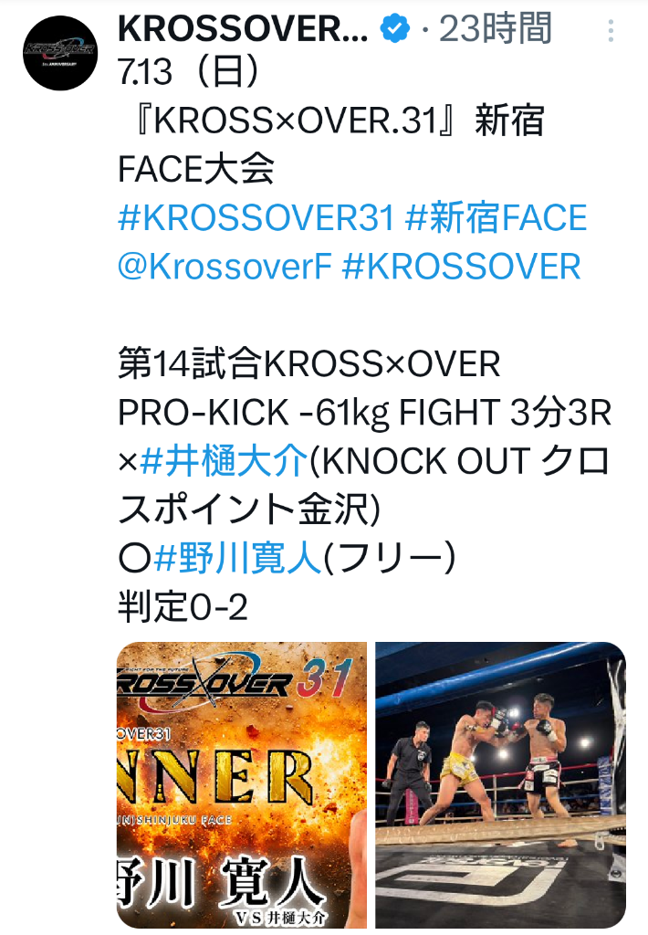 試合を組んでくださったKROSS×OVER様、CROSS POINTグループ山口代表、井樋のスポンサーの皆さま、セコンドについてくれたCBインパクト会長岡田さん、スタッフのヨックン、そして井樋を応援してくださった皆さま、誠にありがとうございました。