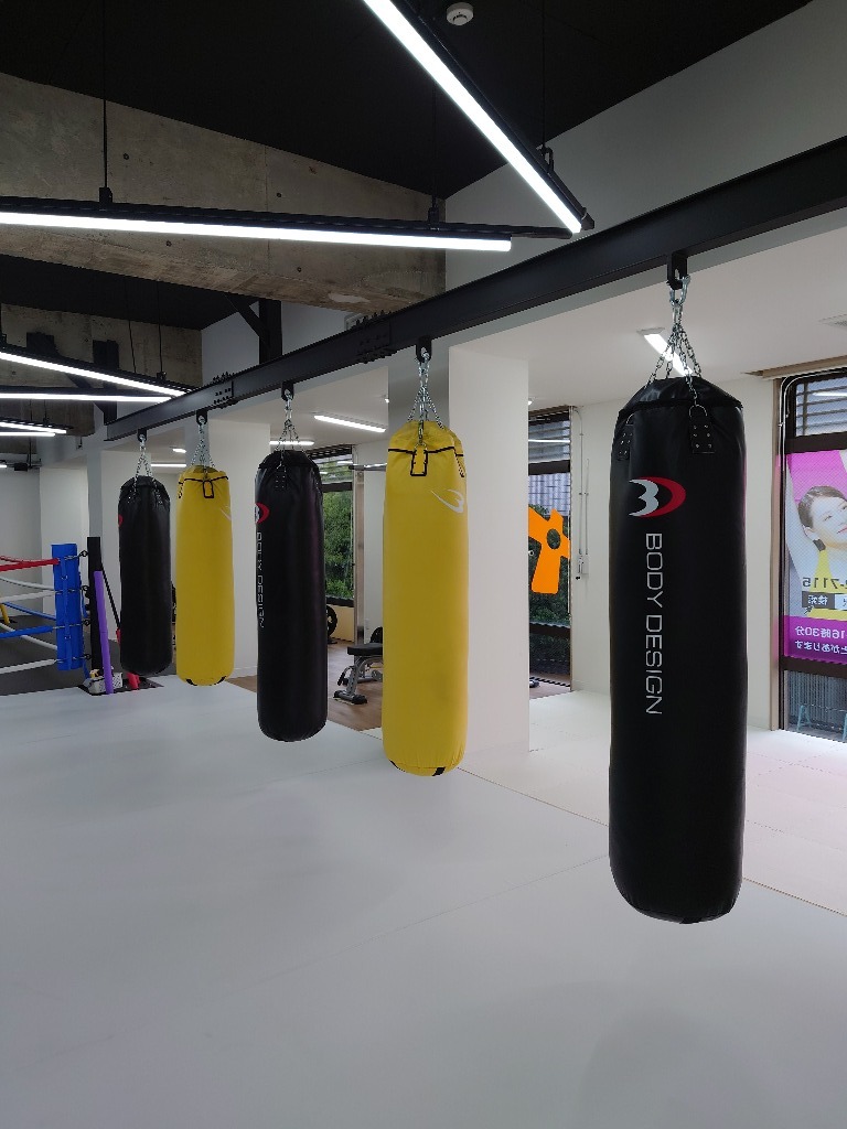 おしゃれで明るいジムの中で、圧巻のフルサイズリングが設備の充実度を物語っております。