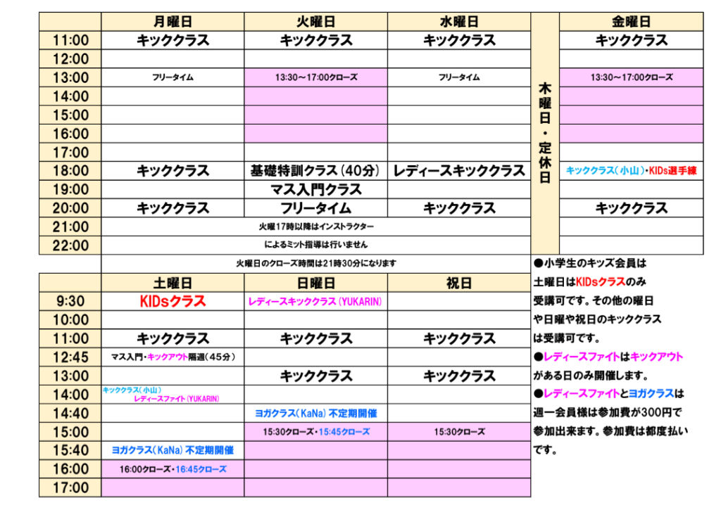 無料体験は全てのキッククラス又はレディースクラスで受け付けております。